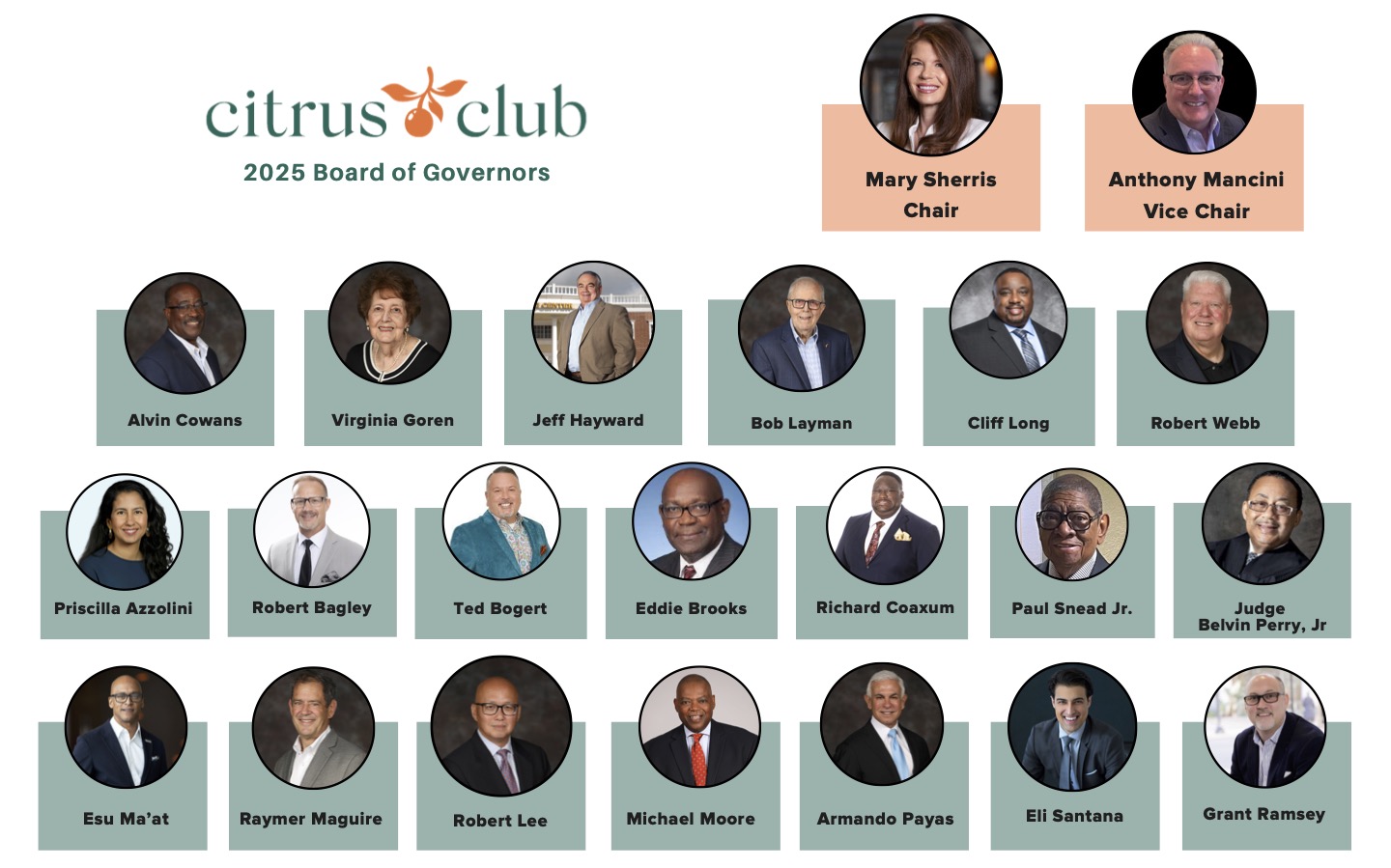 Members of Citrus Club's Board of Governors are professional civic and community leaders of our vibrant community. The goal of the board is to support club leadership in creating the best professional and social membership founded on building relationships and enriching lives.