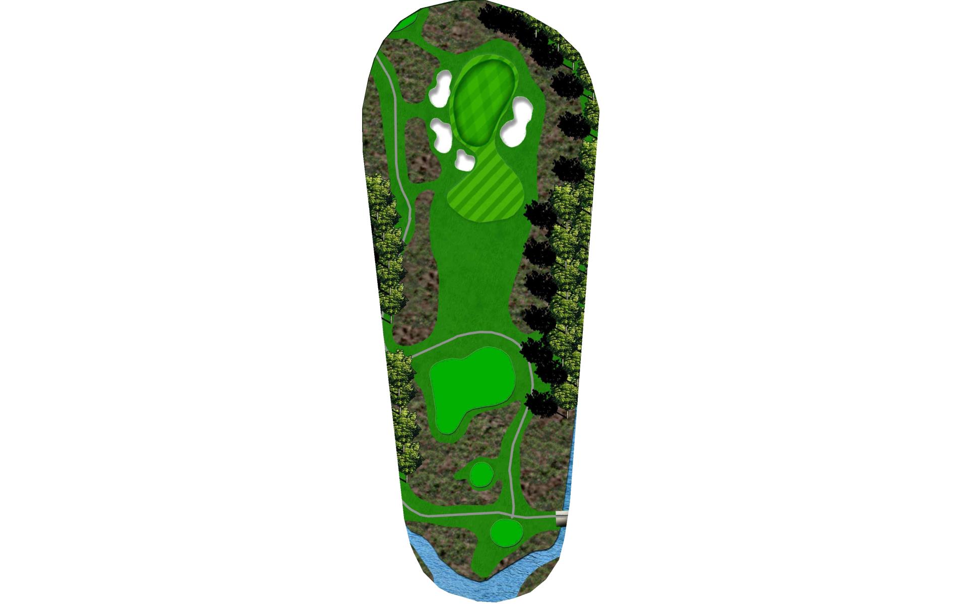 This long par 5 is flanked b the meandering stream. The water is right of the tee shot landing area, then crosses the fairway and must be c…
